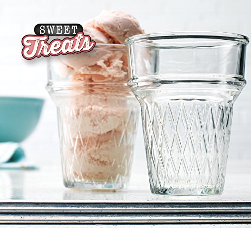 - Etchings on glass resemble a real cone^Clear glass shows off various ice cream colors^Serve up ice cream